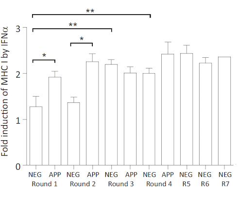 The researchers exposed human immune cells to interferon-alpha. When human cells come into contact with viruses or other pathogens, increased interferon-alpha production is one of the very first immunological responses.
