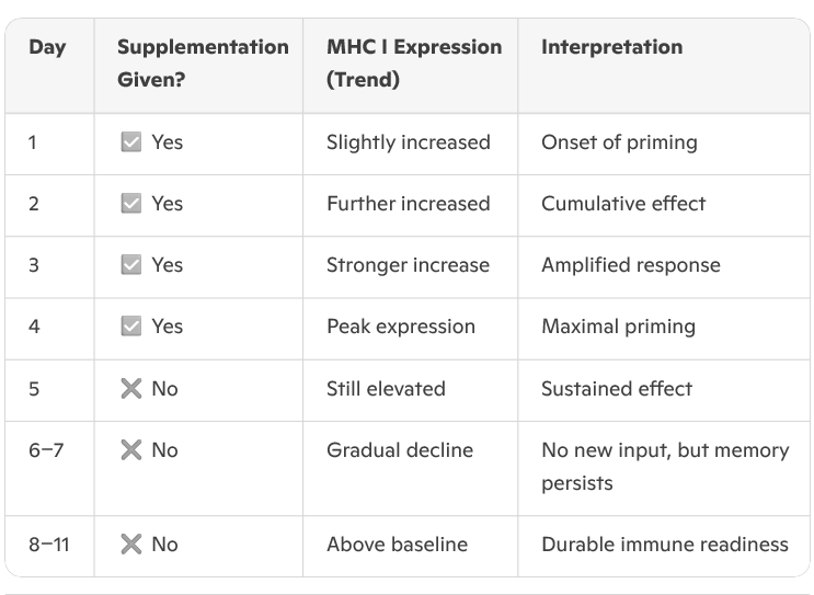 The researchers then examined the production of Major Histocompatibility Complex 1 (MHC1) by immune cells. This increased. This is a signal for cytotoxic T cells to attack infected cells. [For NK cells and memory-like NK cells, the situation is more complex.]