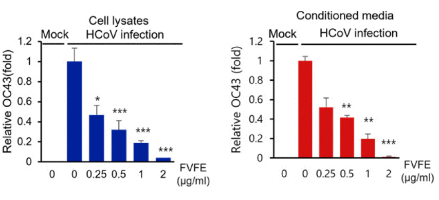 The extract [FVFE] reduced the virus in both measurements, as shown in the figures below. Click on it for a larger version.