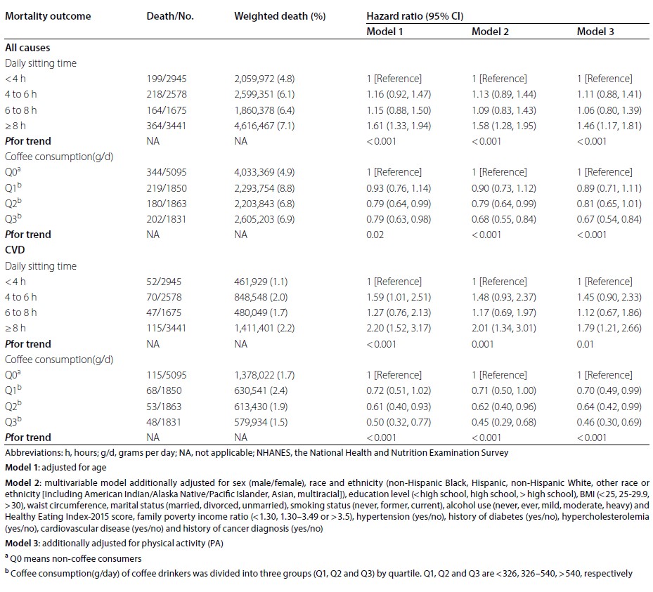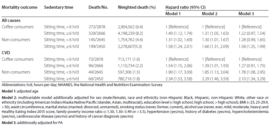 The researchers determined whether coffee influenced the effects of sitting on the risk of death.