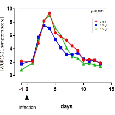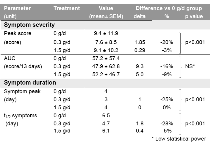 The most effective daily dose of cRG-1 was 300 milligrams. This dose reduced symptom severity by roughly 20 percent and symptom duration by 25 percent.