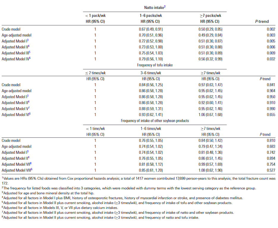 "The findings from the present study suggest that in Japanese postmenopausal women, habitual natto intake may be associated with a decreased risk of osteoporotic fractures, independent of confounding factors, including bone mass density", write the researchers.