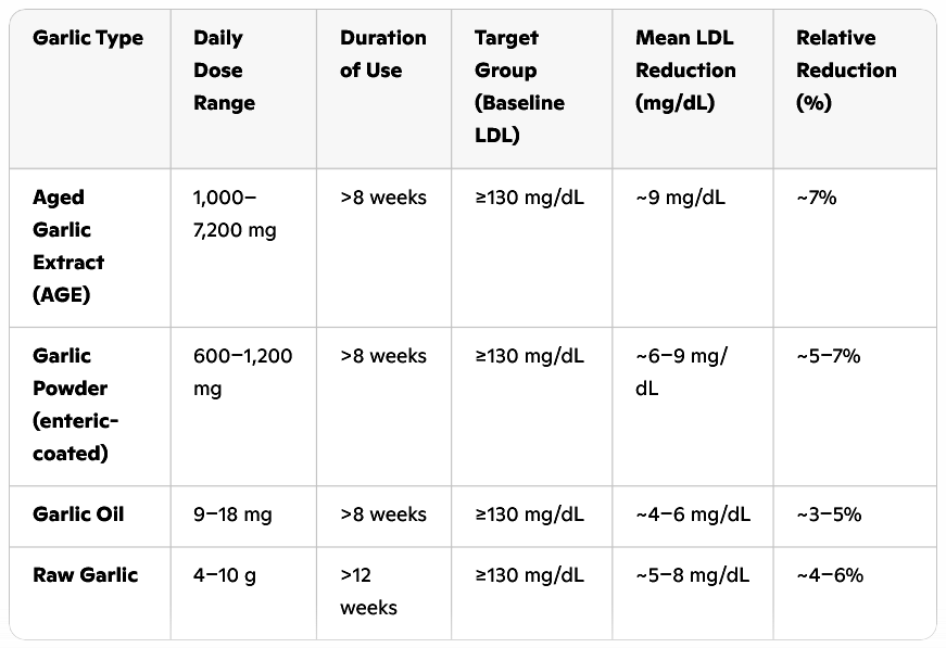 Garlic's effect on LDL is less pronounced than that of statins. Statin administration can lead to a 5-7-fold greater reduction in LDL levels. However, statins can have serious side effects.
