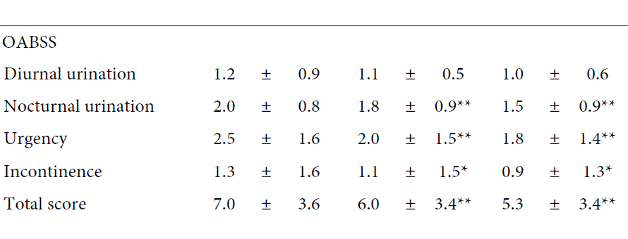 The researchers determined the severity of urinary problems before, during, and on the last day of supplementation using the Overactive Bladder Symptom Score questionnaire. Before supplementation began, the study participants scored an average of 7 on this questionnaire. Their problems were therefore "moderate."