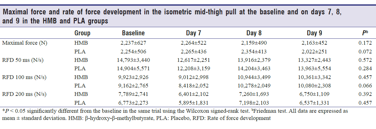 The researchers also looked at the strength of the boxers. In the table above you can see that HMB had no influence on this aspect.