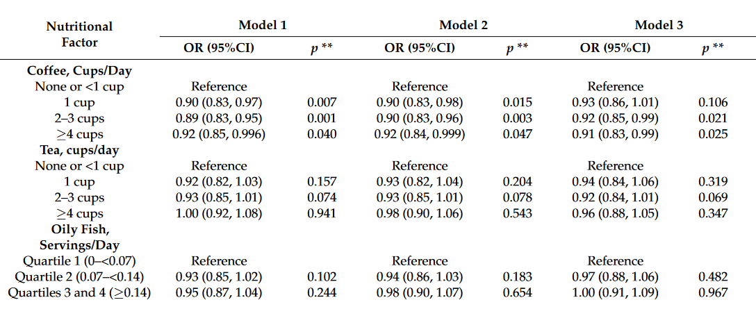 The strongest connection that the Americans were able to extract from the British data was the link between coffee and the risk of disease. Those who drank 2 cups of coffee or more daily had an 8-9 percent lower risk of Covid. The table below tells you this.
