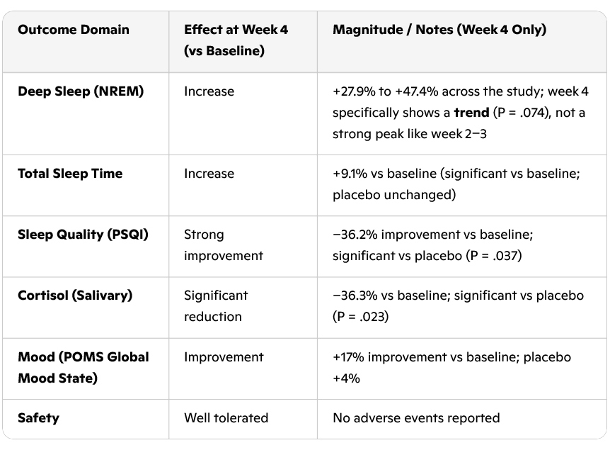Sleep duration increased by about half an hour per day with supplementation, similar to the maizinol study we discussed earlier this week.