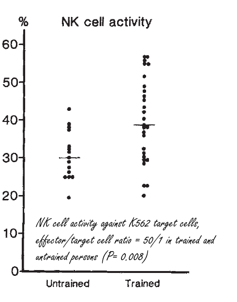 But that's not all. An active lifestyle also increases the number of NK cells. In this study, this lifestyle also increased the number of CD16+CD56+ NK cells.