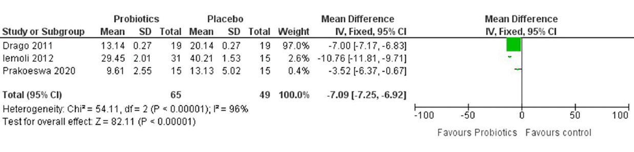 Supplementation with probiotics reduced the score by an average of 8 points. This amounts to a decrease of 8 percent.