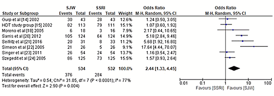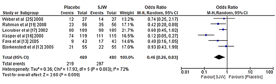 "However, due to their strong side effects, they are not recommended. Instead, the use of St. John's wort is preferred as it is a cheap, readily available and effective treatment strategy for mild to moderate depression, with mild side effects. Thus, based on the current meta-analysis and statistically significant results (p smaller than 0.05), the use of St. John's wort for depression in adults is strongly recommended."