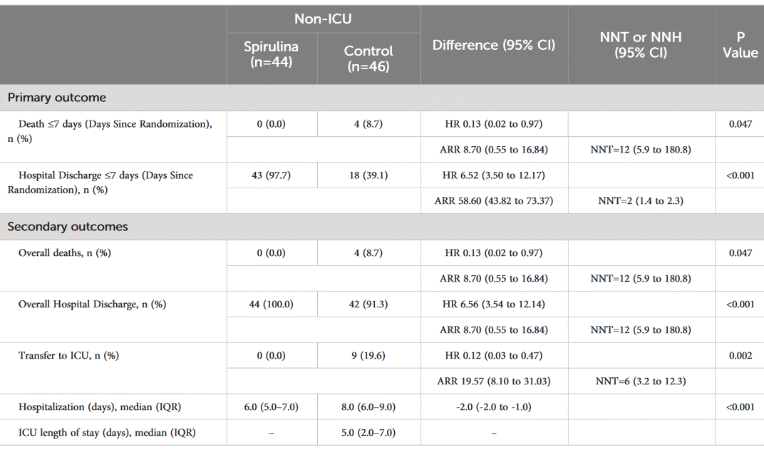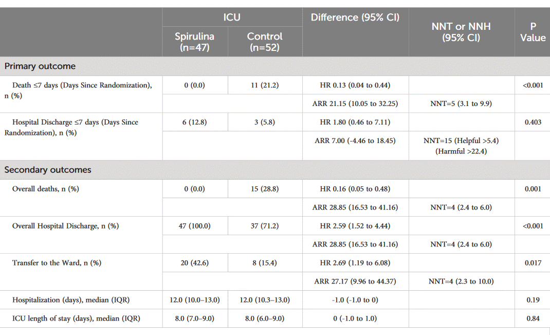 The researchers gave half of the patients in the ICU group and in the non-ICU group 15 grams of spirulina every day in addition to their regular diet and medication. In powder form that's about one and a half tablespoons.