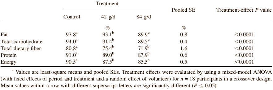 "When an 84-g serving of almonds was incorporated into the diet daily, the energy digestibility of the diet as a whole decreased by 5 percent", the researchers write. "Therefore, for individuals with energy intakes between 2000 and 3000 kcal/day, incorporation of 84 g almonds into the diet daily in exchange for highly digestible foods would result in a reduction of available energy of 100–150 kcal/day."