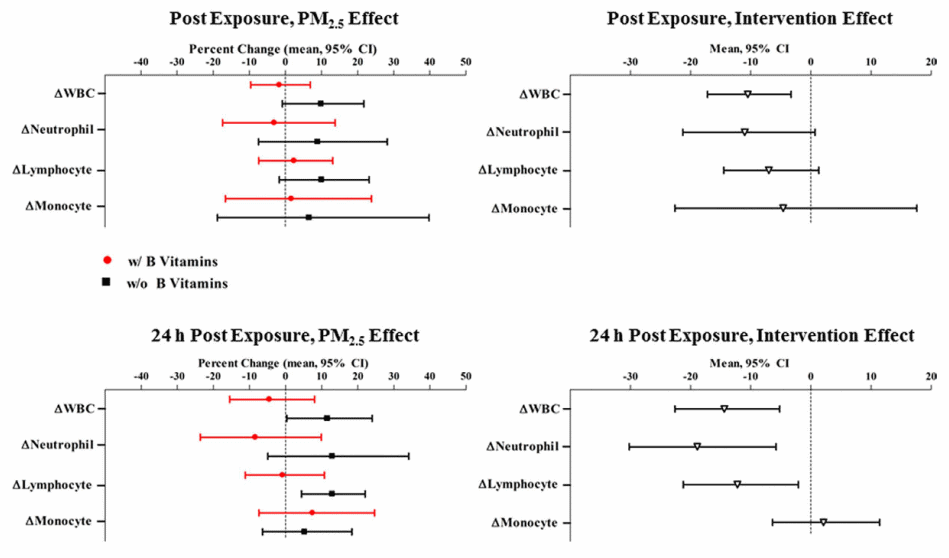 Again, supplementation with B vitamins protected against this effect. If the subjects had taken B vitamins in the weeks before exposure, the white blood cell concentration remained stable.