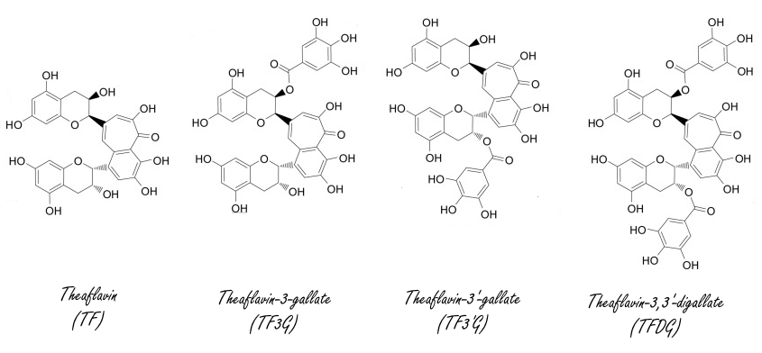 The researchers tested 4 theaflavins. You can see them below. Click on the figure for a larger version.