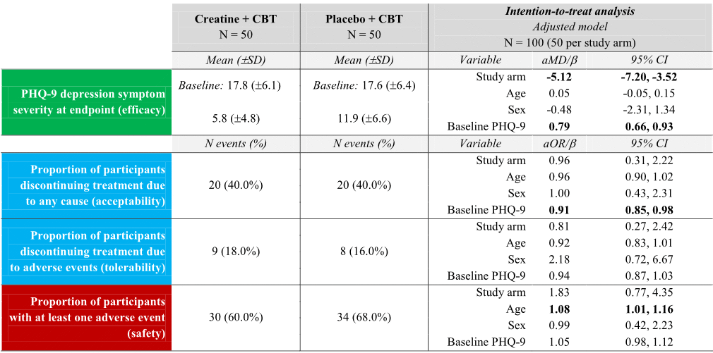 Cognitive behavioral therapy helps depression better when combined with creatine supplementation