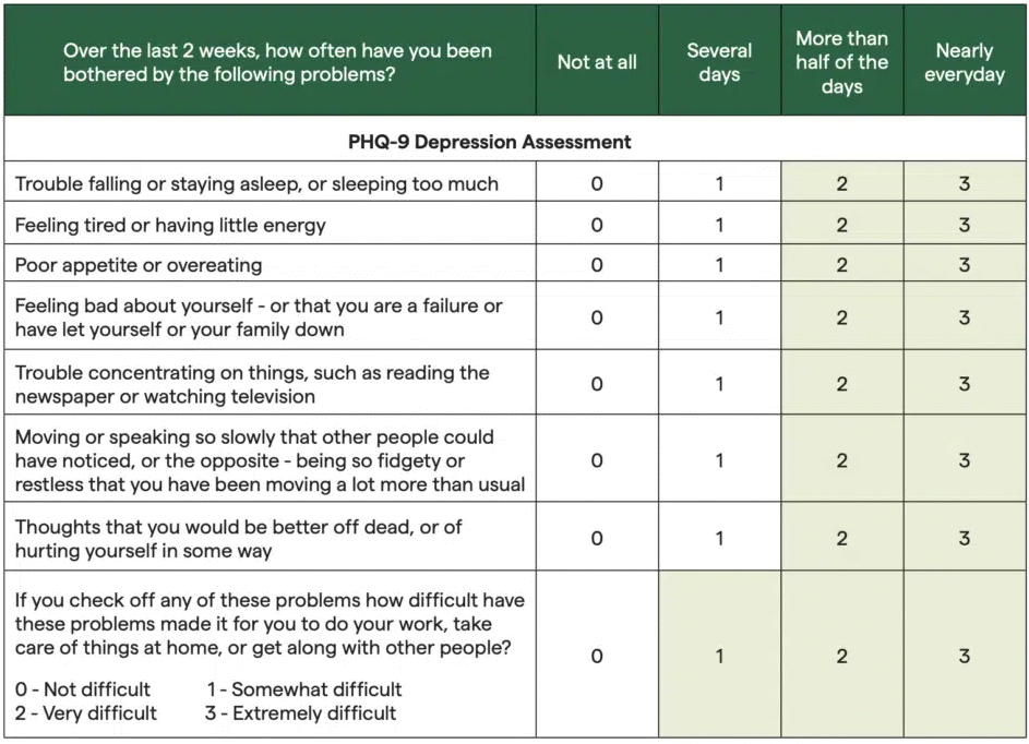 Before and after the supplementation, the researchers determined the severity of the depression using the PHQ-9 questionnaire. You can see this questionnaire below. Click on it for a larger version.