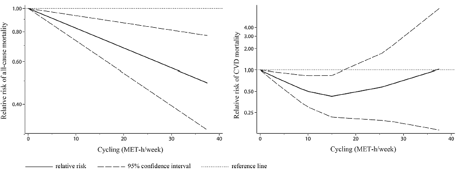 When the researchers looked specifically at the risk of death from cardiovascular disease, the picture was different. Then a weekly effort of 15 MET-hours was optimal. If you cycle slowly, that comes down to 150 minutes per week.