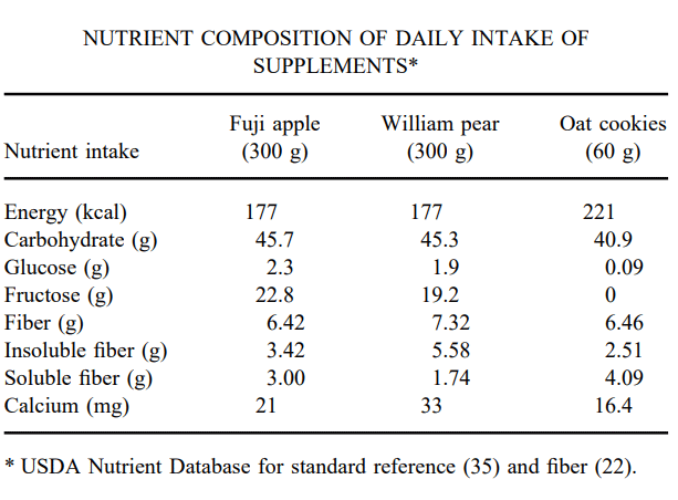 The researchers divided the women into an experimental group and a control group. The women in the experimental group ate 3 apples or 3 pears every day for 12 weeks. The women in the control group ate 3 oatmeal cookies daily.