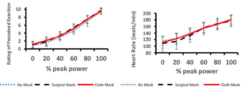 "Our study found no detrimental effect of wearing either a non-disposable cloth or disposal surgical face mask while exercising vigorously on exercise performance", summarize the Canadians.