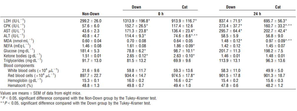 The same was true for the concentration of muscle damage indicators in the blood, for example of creatine kinase [CK] and LDH. These were also lower in the mice that had been given green tea extract.