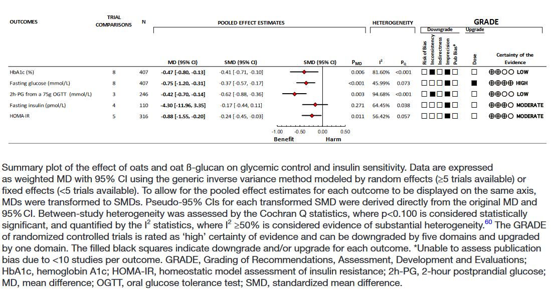 "Oats and oat beta-glucan consumption over the short-term to moderate-term results in improvements in established markers of fasting and postprandial glycemic control beyond concurrent therapy in adults with type 2 diabetes who were predominantly middle-aged, overweight or obese and with moderately controlled diabetes treated by antihyperglycemic medications or insulin", the Canadians write.