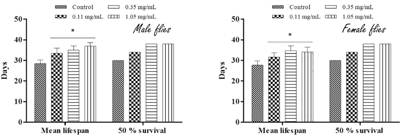 "This study demonstrates that erinacine A-enriched Hericium erinaceus mycelia can be a candidate to prolong life expectancy by reducing oxidative stress and increasing antioxidant defenses", write the researchers. "However, further biochemical investigations of the mycelia constituents may be needed to assess the efficacy and the underlying mechanism of its action for the elongation of lifespan."