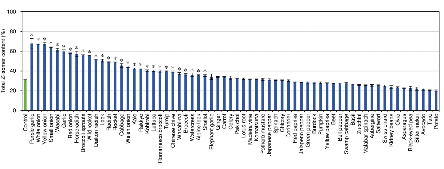 Honda found that heating the tomatoes with fresh onions, garlic and wasabi, garlic and onion powder and fresh shiitakes increased the concentration of Z-lycopene in the tomato sauce.