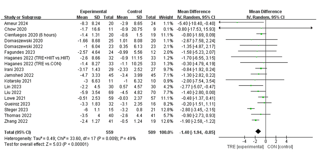 If you want to lose weight by intermittent fasting, you will prevent your muscle mass from breaking down if you also reduce calorie intake, continue intermittent fasting for a longer time, work out with weights and do not make your eating window too narrow. This is evident from a meta-study that Chinese kinesiologists published in Nutrients.