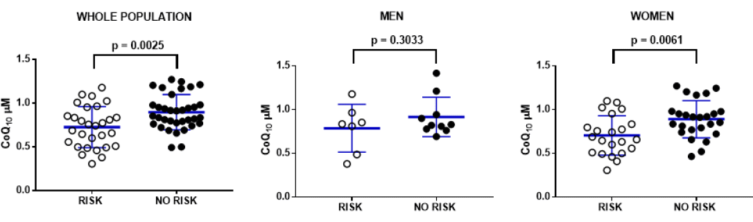 When the Spaniards subsequently measured the Q10 levels of the study participants, they again saw higher Q10 concentrations in the blood of the study participants in the No Risk groups.