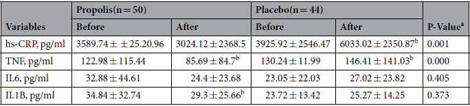 According to the researchers, a possible mechanism of action for propolis is that propolis reduces the production of inflammatory factors such as TNF-alpha and - to a lesser extent - CRP.