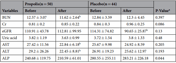 In the subjects in the placebo group, the eGFR decreased by 20.7 percent. That means that their kidney function deteriorated. This decrease was absent from the subjects who had used propolis.