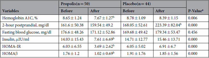 In the experimental group, insulin levels dropped by 45 percent. Moreover, after these subjects had swallowed propolis for 90 days, the concentration of hemoglobin A1C decreased by 0.98 percent. Hemoglobin A1C is an indicator of the total exposure to potentially toxic doses of glucose over a longer period.