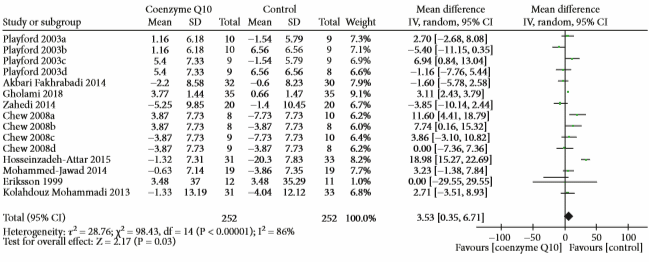 Q10 also reduced fasting glucose levels. This effect, and the reduction of the glycosylated hemoglobin concentration, show that Q10 supplementation helps control glucose levels. There was a trend that Q10 reduced insulin resistance, but this was not statistically significant.