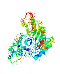 When someone has rhabdomyolysis their muscle tissue is so badly damaged that the contents of the muscles enter the bloodstream, including the substance myoglobin [spatial structure shown below.]