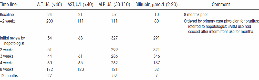 After the man developed jaundice and itching, he sought medical attention. Analysis of his blood showed that the concentration of enzymes, which indicate that the liver is damaged, was increased. The analysis suggested the man suffered from cholestasis, a classic side effect of using oral anabolic steroids.