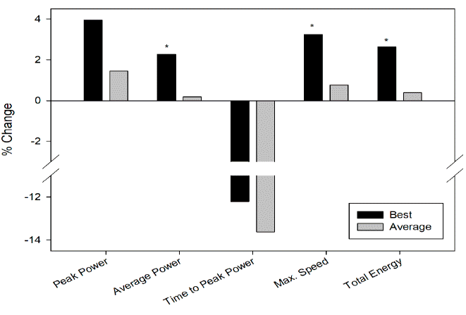 The researchers did find significant results when they only looked at the best sprints. Then they saw that supplementation with Cardiose increased the subjects' power [say: the speed].