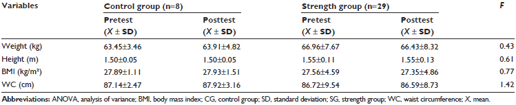 The strength training had no statistically significant effect on bodyweight, BMI or waist circumference [WC]. The experiment was too short for such effects to be observed, the researchers suspect.