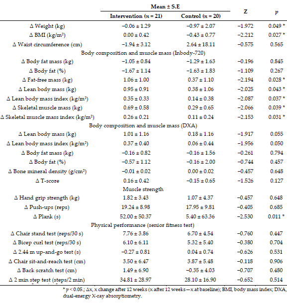 Results Both groups lost some body fat, gained muscle mass and became fitter and stronger. However, the gains in muscle mass, fitness and strength were more convincing in the group that had taken the protein supplement.