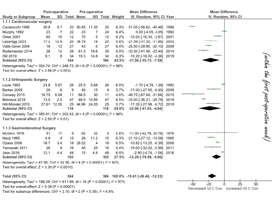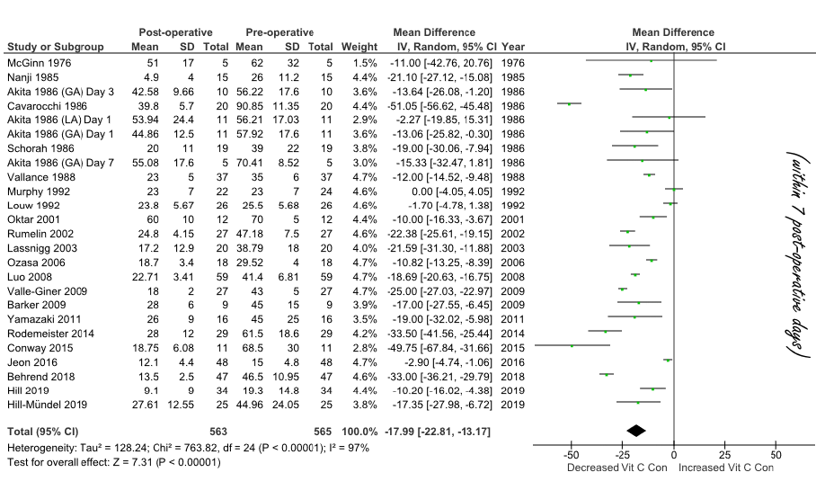 This may mean that vitamin C supplementation accelerates recovery after surgery. Whether this is really the case cannot be determined on the basis of the Australian meta-data. But other research certainly points in that direction.