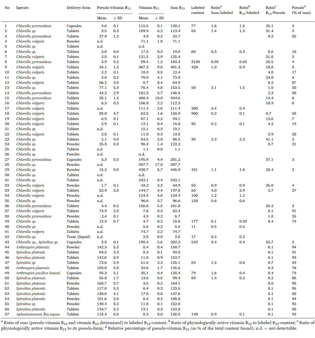 There was not a single product with spirulina that could provide 3 micrograms of vitamin B12. Only a quarter of the products with chlorella contained sufficient vitamin B12 per average daily dose.