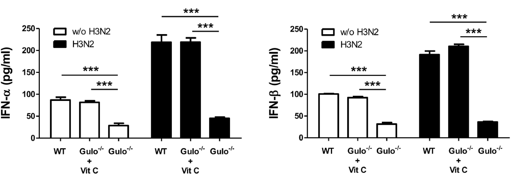 The Koreans infected the test animals with an H3N2 influenza virus and watched how they fared. The researchers did the same with healthy mice with a functioning Gulo gene [WT].