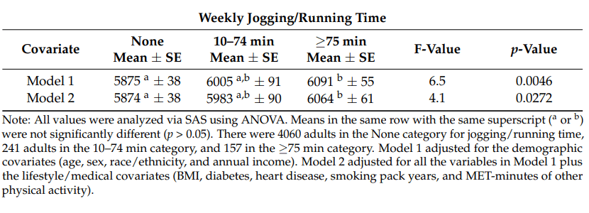 "Nonetheless, the present findings support the current U.S. vigorous activity guidelines and encourage engagement in an active lifestyle through regular jogging and running at least 75 min per week."